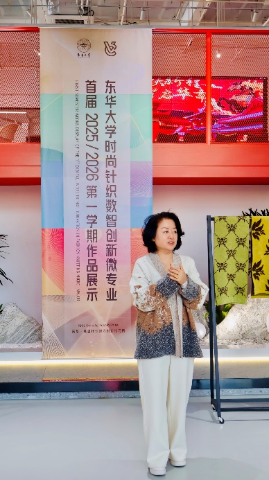 1月23日下午,东华大学“时尚针织数智创新”微专业2025/2026第一学期作品展示暨结课仪式在慈星(上海)研发中心一楼展厅成功举行。活动汇聚了校企双方代表、专业教师与首届学员,共同见证数智技术与传统针织工艺融合创新的阶段性成果。
